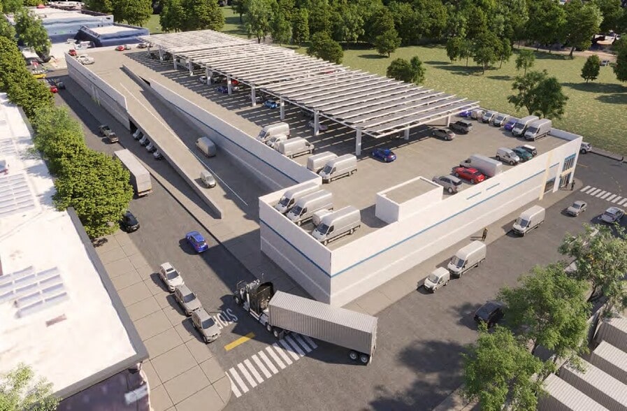 102,291 SF Secured, Lit, EV Ready Parking Structure & clearance accommodates Box Trucks, Vans, & Autos Divisible/can be leased separately from warehouse