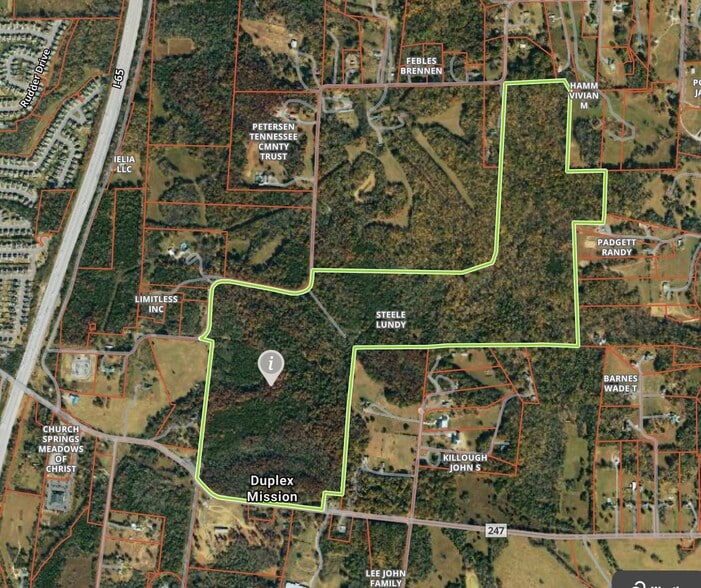 ±217 acres of contiguous development land located along Duplex Road in Spring Hill, Tennessee, within Williamson County. The property lies east of Interstate 65 with convenient access to I-65, US-31, and the broader Spring Hill and Franklin submarkets. The site is comprised primarily of wooded acreage with gently rolling to rolling topography and natural drainage features, offering favorable conditions for large-scale development. The property includes multiple points of ingress and egress from Duplex Road and Owl Hollow Road, providing flexibility for future site planning and circulation. The parcel configuration allows for a broad east–west footprint and phased development potential. Surrounding land uses consist of low-density residential, agricultural tracts, and expanding suburban and commercial development consistent with the area’s growth trajectory. Utilities including water and electric are available on site, reducing the need for extensive off-site infrastructure extensions. The property is currently zoned RD-5 and is located within the City of Spring Hill’s proposed Urban Growth Boundary and Williamson County’s Growth Plan. Under the Spring Hill Rising 2040 Plan, the site has been identified as a Future Innovation Area, supporting a wide range of potential future land uses. Intended uses within this designation include technology and data facilities, research and innovation campuses, medical and healthcare-related development, professional office, hospitality, restaurant, mixed-use, and municipal or institutional uses. The scale, location, access, and planning framework make this property suitable for a variety of large-format development strategies, including employment centers, mixed-use districts, institutional campuses, or phased master-planned projects. Two contiguous parcels are being offered together as a single development opportunity.