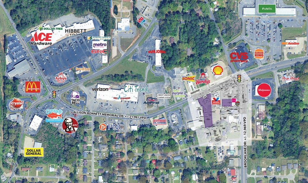 Approximately 0.70 AC Available in Hueytown, AL ~1,700 SF Endcap Available Prime location along Allison Bonnet Memorial Dr. with ±21,991 vehicles per day Surrounded by national retailers and quick-service restaurants High-visibility site currently being rezoned to B-3 (General Business) Zoning allows for a wide range of commercial uses