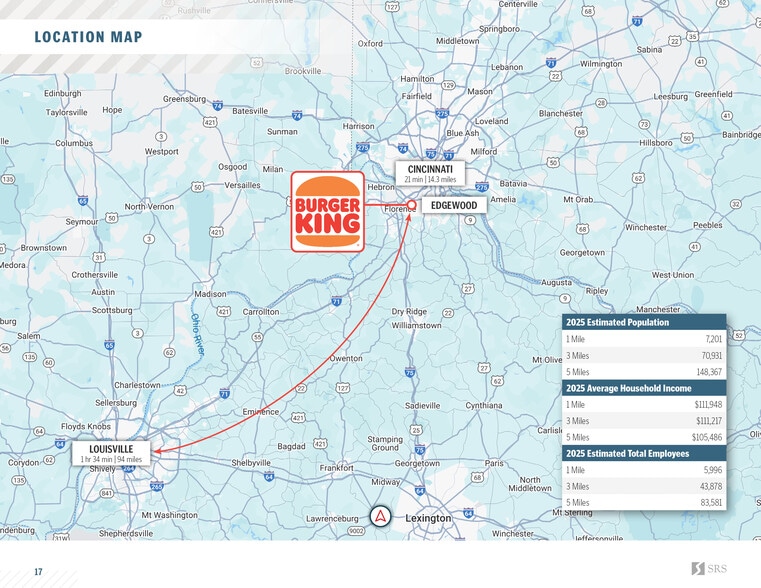 SRS National Net Lease is pleased to offer the opportunity to acquire the fee simple interest (land & building ownership) in an absolute NNN, freestanding, drive-thru-equipped Burger King investment property located in Edgewood, KY. The tenant, Carrols, LLC, has over 11 years of term remaining, with an additional four (4) 5-year option periods to extend. The lease features 8% rental increases every 5 years throughout the initial term and renewal options, growing NOI and hedging against inflation. The lease is absolute NNN with zero landlord responsibilities, making it an ideal, management-free investment opportunity for a passive investor. Founded in 1954, Burger King is among the leading global QSR hamburger chains, with over 30,000 restaurants in 120+ countries.