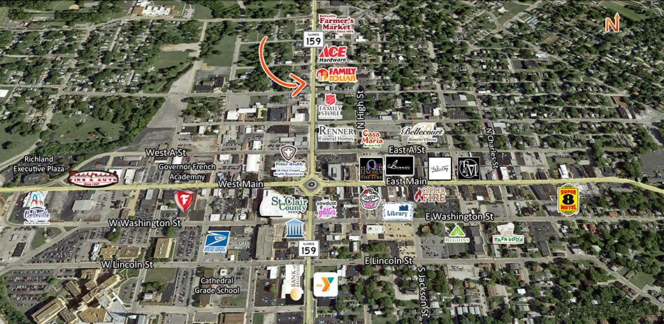 617 SF office retail suite available for lease. Open office concept with private restroom. Parking in rear of building. Other tenants include a long term insurance agency, successful barbershop and two residential tenants on second floor. Excellent location in a highly visible/trafficked area right off of IL-159 (North Illinois St.) with a traffic count of nearly 13,000 vehicles per day. Many retail and restaurant options nearby.