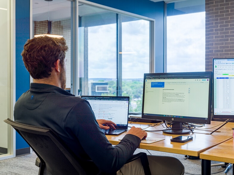 Built in 1978, this five-floor property sits on two acres shaded by glorious mature oaks. Having just completed a massive physical transformation, it now offers state-of-the-art workspace, meeting and training rooms, and a stunning sunroof-lit penthouse community lounge with unmatched views and a new 1500 square foot balcony. Also features an outdoor biergarten style amenity and event space - The Hideaway Biergarten. Access: Four blocks from the Austin Community College Highland campus. Located just off I-35, SH-183, and SH-290, 15 minutes from Austin Bergstrom International Airport.