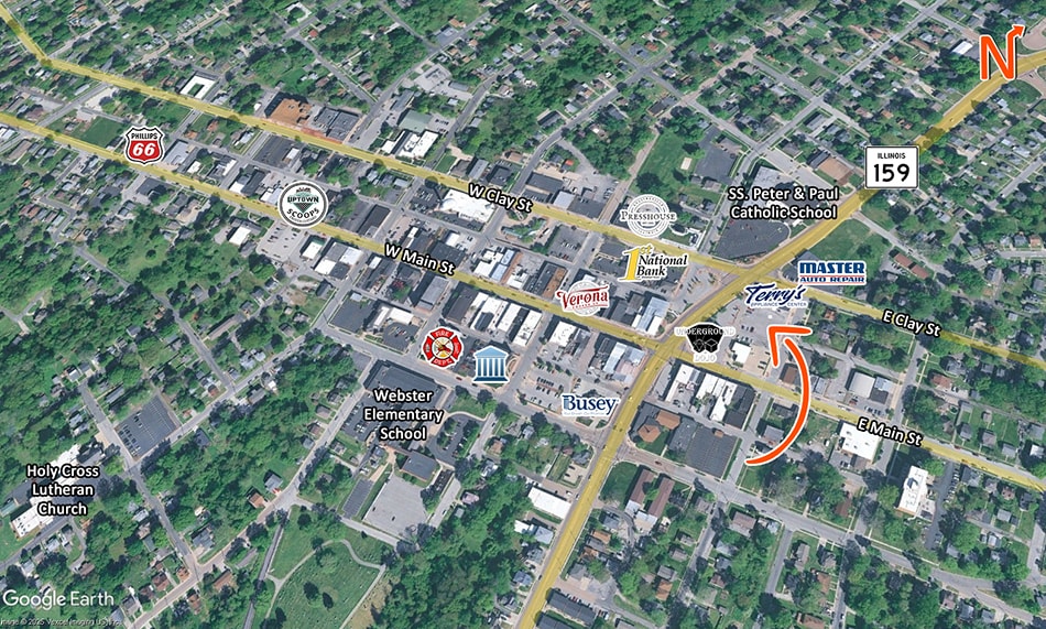 The site is located in downtown Collinsville, adjacent to the city parking lot, with excellent access to the property.