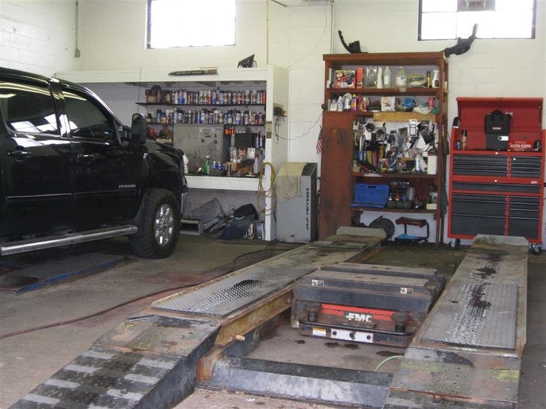 The single-story building provides an organized layout featuring a reception area, private office, and two fully equipped service bays complete with a hoist and air compressor. This configuration suits owner-users or investors seeking strong demand in the local automotive sector. An additional adjoining lot is included, offering flexibility for vehicle display or potential new construction, enhancing future growth options.