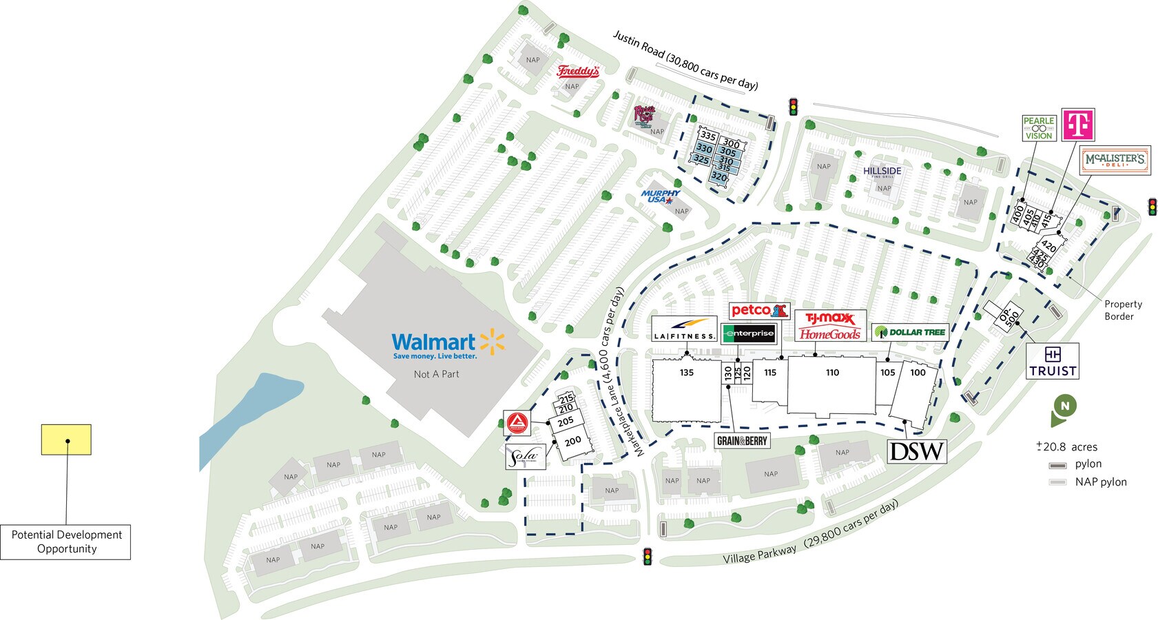 Marketplace at Highland Village is a 206,926 square foot power center located in Highland Village, TX, near the Dallas-Fort Worth MSA. Marketplace at Highland Village is also home to national tenants such as T.J. Maxx/HomeGoods, Petco, Dollar Tree and LA Fitness with Walmart as a shadow anchor.