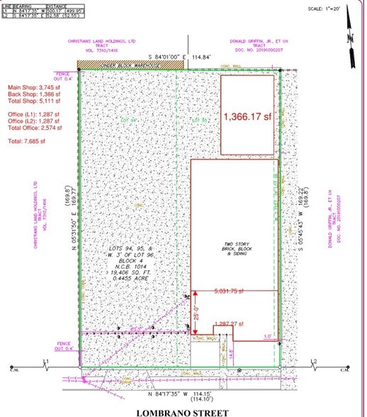 Main Shop/Warehouse: 3,745 sf Back Shop/Warehouse: 1,366 sf Total Shop/Warehouse: 5,111 sf Office (L1): 1,287 sf Office (L2): 1,287 sf Total Office: 2,574 sf Total: 7,685 sf