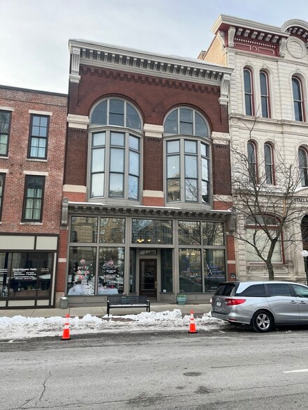 The space available for lease offers tenants the rare opportunity to locate their business in a beautiful, well maintained historic building overlooking the Tippecanoe County Courthouse. The suite formerly housed the closing department of Stallard and Schuh Title Company. Natural light floods the suite which features soaring ceilings and beautiful, historic architectural detail. Street parking serves the property in addition to both County and City parking garages. The County Parking Garage entrance is located on Columbia Street less than one block away from the property and the City Parking Garage is on 5th Street. The suite is located in downtown Lafayette’s central business district and county seat of Tippecanoe. A growing number of residents are moving to the area in both existing multifamily units, condos, and homes and a booming development pipeline of new multifamily. Ample shopping and dining options can be found within walking distance surrounding the property. Additionally the property is approximately 1 mile from the main campus of Purdue University.