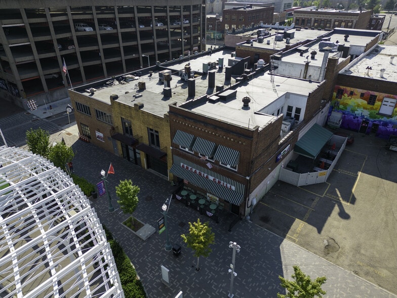 Unique retail and creative office units are now available for lease in Canton's Innovation District overlooking Centennial Plaza in Downtown Canton. This twostory gem, boasts unique features on both levels, such as garage doors (inside and outside!), balconies, great ceiling heights, and exposed brick. The recently developed Centennial Plaza is the "city square" for Canton and Stark County, contributing to a growing and vibrant Downtown