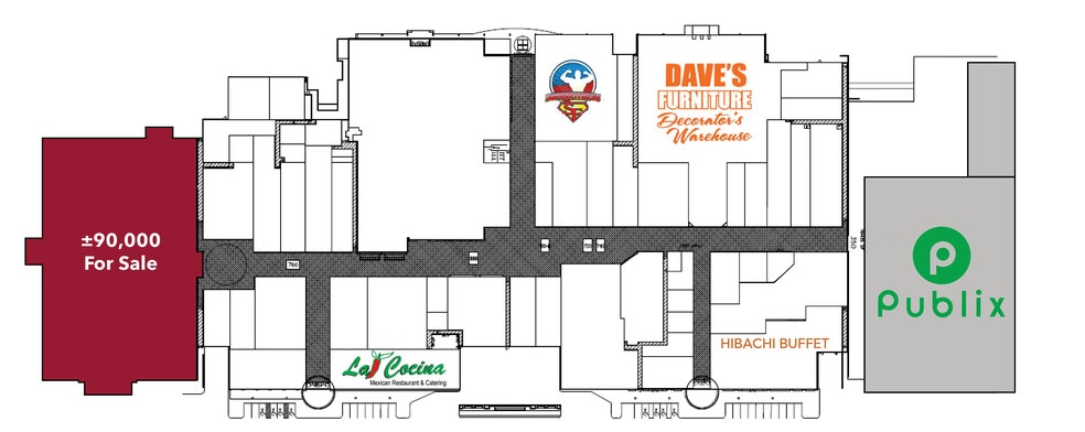 Located at the intersection of Huffman Mill Road and S. Church Street (Hwy 70) Convenient to I-40 and I-85 Anchored by Dave’s Furniture and Decorator Warehouse; Co-tenants include Burlington Artist League, Superfitness Health Club, East Coast Wings & Grill, Hibachi Buffet, and Five Guys Adjacent to the Church Street Commons, a Publix anchored center with MOD Pizza, My Eyelab, Aspen Dental, and Crumbl Cookies Nearby businesses include Harris Teeter, Pet Supermarket, Panera Bread, Walgreens, Lowe’s Home Improvement, CVS, Taco Bell, Starbucks, and Longhorn Steakhouse