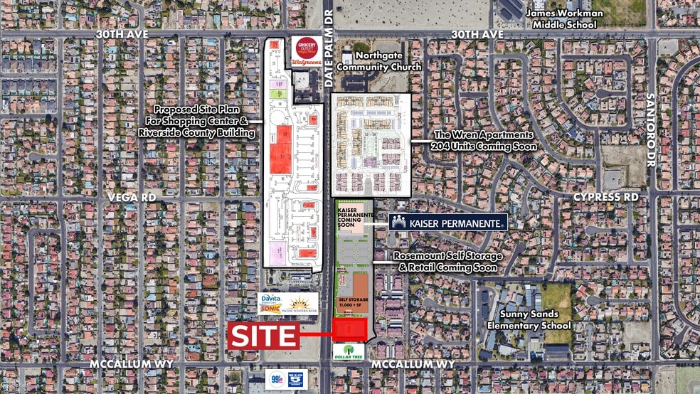 - Located at the signalized intersection of Date Palm Dr and McCallum Way