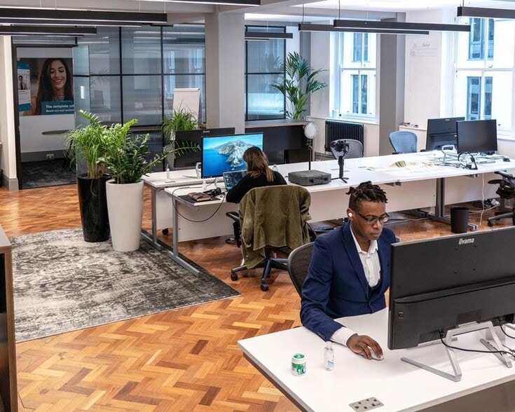 - Raised access floors, LED lighting, air conditioning, exposed services.
