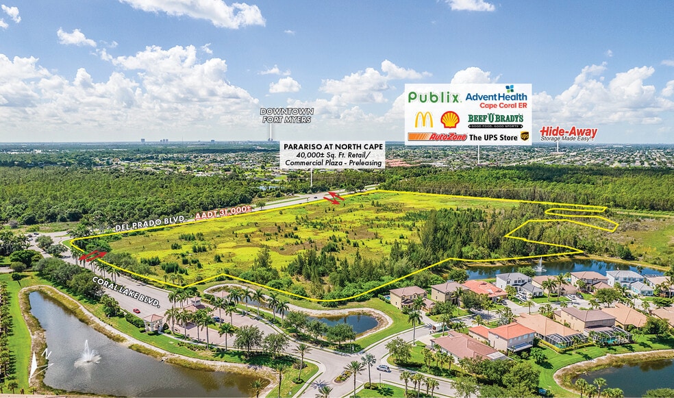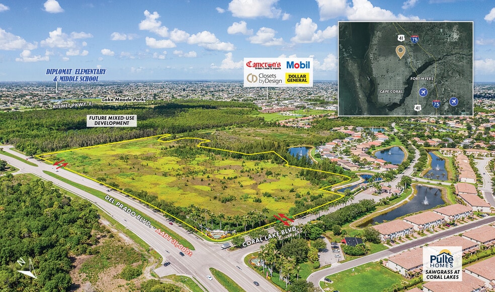 Coral Lakes is entitled for up to 350 residential dwelling units on 34± acres of development land directly fronting Del Prado Boulevard North. Strategically located adjacent to the completed Coral Lakes single-family community, the site presents a compelling opportunity to deliver new multi-family housing along a major arterial roadway.