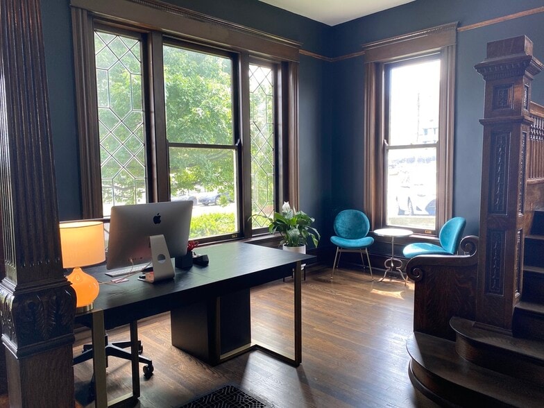 Originally constructed in the early 1900s and thoughtfully renovated, the two-story property totals approximately 6,506 square feet and sits on a 0.28-acre corner lot with strong street presence and excellent walkability. The interior features high ceilings, hardwood floors, abundant natural light, and a flexible layout with multiple private offices, conference rooms, open collaboration areas, and support spaces.