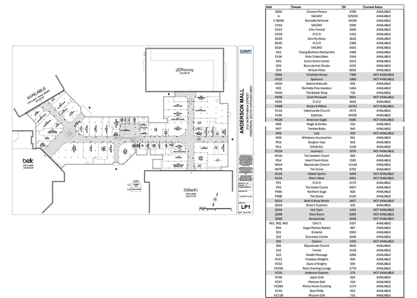 McCoy Wright is pleased to present an exceptional leasing opportunity at Anderson Mall, located at 3131 N Main Street in Anderson, SC. Available for lease are approximately 1,100 to 250,274 square feet of both big-box (former JC Penney space) and inline retail space. The mall itself spans 313,602 square feet and is situated on a 34-acre site with over 3,200 parking spaces. Anchored by a diverse mix of national retailers, including Belk, Dillard’s, Books-A-Million, Bath & Body Works, and American Eagle, Anderson Mall is strategically positioned in the heart of Anderson County’s primary retail corridor. Neighboring retailers include Chase Bank, Home Depot, Target, Hamrick’s, Planet Fitness, and Roses, enhancing the mall’s appeal. The property benefits from high visibility and traffic along Clemson Boulevard, with an estimated daily traffic count of approximately 32,000 vehicles. Vacancy rates in the Clemson Boulevard submarket are currently at a low 3%, further underscoring the area’s strong retail demand.