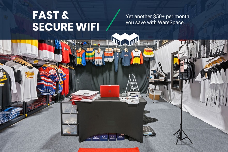At WareSpace, you get a private unit with industrial racking, shared loading docks, and warehouse equipment. Enjoy high-speed Wi-Fi, climate control, and 24/7 security—plus free access to conference rooms, a kitchen, and daily maintenance. An on-site General Manager keeps everything running so you can focus on your business.