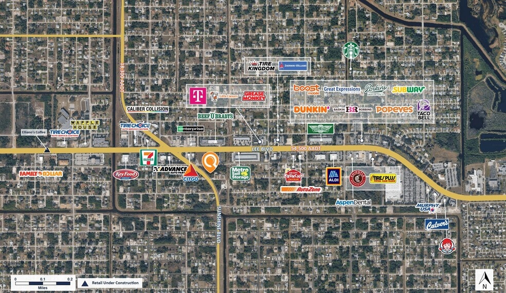 - Fronting Sunshine Blvd (18,300 AADT) near the lighted intersection of Lee Blvd (54,500 AADT)