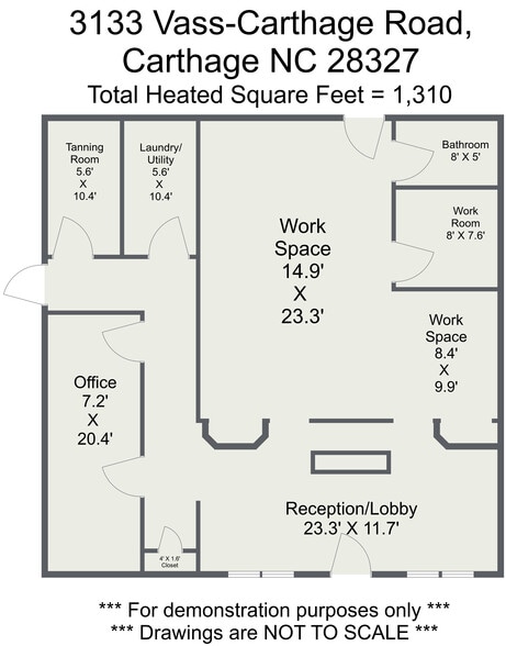 Charming retail location with tons of possibilities! Currently a beauty salon, this property is located next to a high-traffic intersection just outside Whispering Pines. The lobby/reception area opens into the work area, which includes extra retail space, a separate workroom, and a bathroom. From the left side of the lobby, a hallway leads to a long office, laundry/storage room, and tanning room. In addition to the front door, there are two other exits. Equipped with handicapped parking, ramp, and other code-related requirements. Cement-epoxied floors throughout. Please note that this is still an active business location, and showings should be scheduled outside of business hours or on weekends. The current business is relocating, so this is a property sale only.