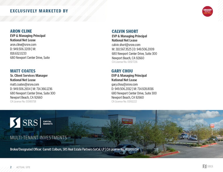 SRS National Net Lease Group is pleased to offer the opportunity to acquire the fee simple interest (land & building ownership) in a NNN leased, corporate signed, recently constructed, Grocery Outlet Bargain Market investment property located in Brawley, California (Imperial Valley). The tenant, Grocery Outlet Inc., has approximately 11.5 years remaining with 5 (5-year) options to extend, demonstrating their commitment to the site. The lease features 10% rental increases throughout the initial term and option periods, growing NOI and hedging against inflation. The lease is signed by the corporate entity (NASDAQ: GO) and is NNN with landlord responsibilities limited to roof and structure, making it an ideal, low-management investment opportunity for a passive investor. Based in Emeryville, California, Grocery Outlet is a high-growth, extreme value retailer of quality, name-brand consumables and fresh produce currently operating more than 560 locations nationwide. The building also features state-of-the-art, brand new construction with modern amenities and design.