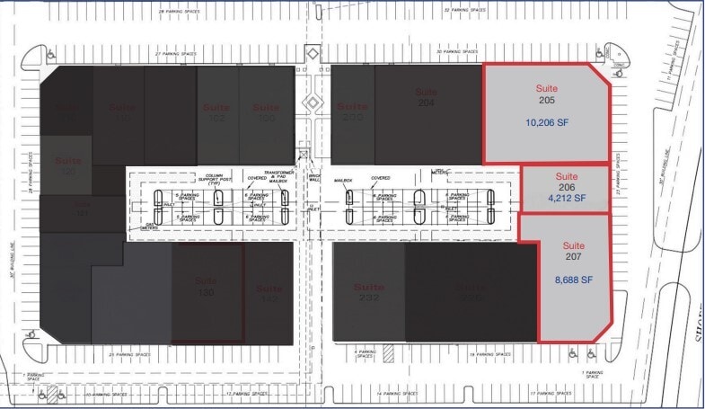 - Multiple move-in ready spaces but ownership is also willing to work with tenants to adjust suites to their needs.