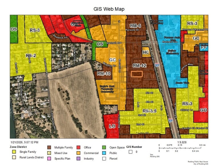 Perfect multi family infill project. This level 1.17 acre property is zoned RM-12 and according to the planning department can accommodate 12 - 14 residential units. In the center of Redding this unique one-of-a-kind parcel of land offers walking distance to shopping, restaurants, public transportation and all city services. The property has all utilities at the lot line.
