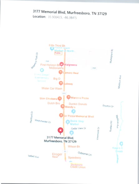 1.25 Ac High Traffic Corner Lot 3177 Memorial Blvd 1.25 Acres of Commercial Land for Lease in Murfreesboro, TN 37129