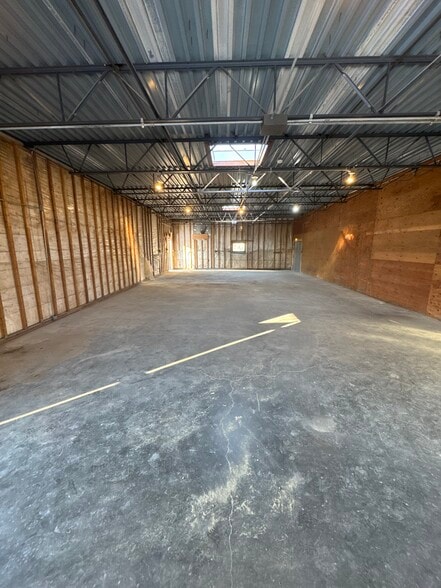 4,800 square foot building featuring two loading docks. The space is currently configured as two connected units separated by two sets of double steel doors allowing for flexible use. One bathroom included. Ramp access can be added. Rent includes real estate taxes and insurance. Tenant is responsible for CAM charges. Office and yard space are available if needed.
