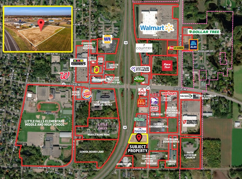 Excellent development opportunity with this 1.96± acre commercial lot located in Little Falls, MN, positioned in a high-traffic area along Highway 10 in the heart of Central Minnesota. This level parcel offers exceptional visibility and direct exposure to steady daily traffic, making it an ideal setting for a wide range of commercial, retail, service-oriented, or mixed-use developments. Surrounded by established businesses, growing residential neighborhoods, and key transportation routes, the property benefits from strong local demographics and convenient regional connectivity. The generous acreage provides ample room for flexible site planning, including building footprint, parking configuration, access points, and future expansion potential. Utilities are available nearby to support development, further enhancing the site’s readiness and long-term value. Whether you are an investor seeking a strategic acquisition, a developer planning your next project, or a business owner looking to establish a presence along one of Little Falls’ primary commercial corridors, this property offers the visibility, access, and versatility to bring your vision to life in a thriving and well-traveled location.