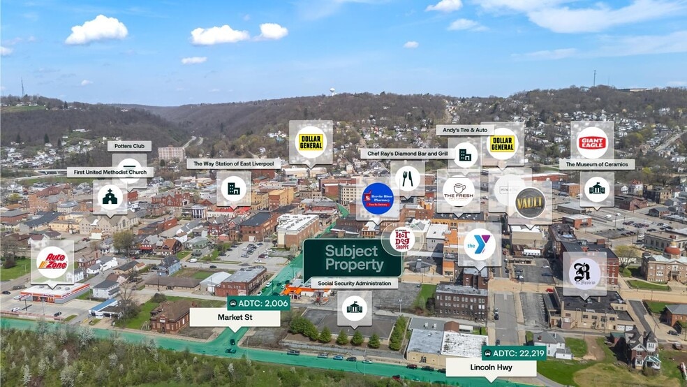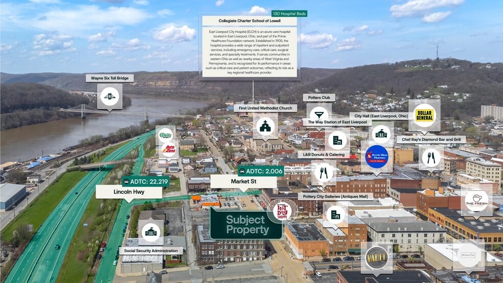 Surmount is pleased to present the exclusive listing for a Hot Dog Shoppe located at 320 Market Street, East Liverpool, OH 43920. The property consists of approximately 3,265 rentable square feet situated on a 0.18-acre parcel and is strategically positioned within the city’s downtown core along Market Street. This location benefits from strong visibility and accessibility, with proximity to Lincoln Highway, which sees traffic counts exceeding 22,000 vehicles per day, providing exposure to both local residents and regional commuters. The asset is secured by a 20-year Triple Net (NNN) lease that commenced April 1, 2021, featuring an annual rent of $223,525 with 1.50% annual increases, offering steady income growth over the lease term.