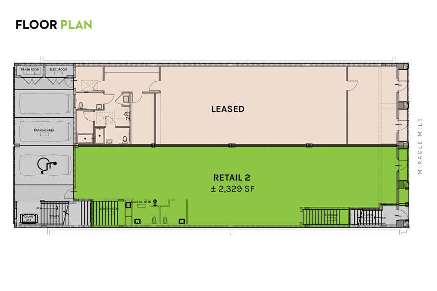- ± 25 feet of frontage on Miracle Mile