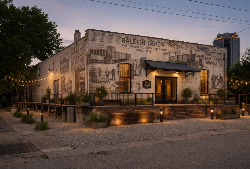 The Ball Wholesale Grocers Building at 320 W. Davie St. is a recent addition to Empire Properties' portfolio, offering a rare leasing opportunity in the heart of Raleigh's vibrant Warehouse District. This prime location boasts high visibility and prominent frontage along W. Davie Street and is surrounded by a dynamic blend of office, retail, and residential spaces, creating a bustling and diverse environment. The Ball Wholesale Grocers Building is a spacious, single-story building that features expansive concrete floors, abundant natural light, an open floor plan, and rich historic architectural details. Since the building has been vacant for several years, Empire Properties is committed to a full-shell historic tax credit rehabilitation, allowing for a custom buildout tailored to the tenant’s needs. This historic tax credit project will include a new roof, new plumbing, mechanical, and electrical systems, and an exterior envelope rehabilitation. This space is ideal for serious retail, entertainment or office users. Surrounded by a vibrant mix of businesses, dining, and entertainment options and walkable to many of downtown Raleigh’s best amenities, it’s an incredible opportunity to secure a presence in one of Raleigh's most sought-after districts.