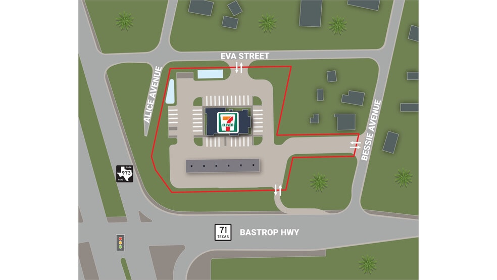 - Prime Hard-Corner Location w/ Exceptional Visibility & Access at the NEC of Hwy 71 (±73,400 VPD) & FM 973 (±27,500 VPD)