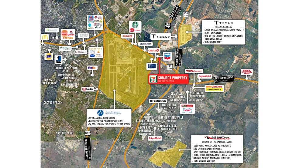- 1 mile from Tesla Giga Texas (21,191+ Employees) & 4 Miles from Circuit of The Americas (1.2M+ Annual Visitors; 440,000+ F1 Weekend)