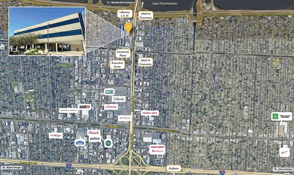 Move-in ready and fully furnished office space is now available for lease, providing an ideal environment for a variety of office needs. The space features two conference rooms, two kitchens, and a private bathroom with shower. There are eleven offices, each with windows that provide abundant natural light and great views. There are also open areas which can be used as collaborative workspace. Two elevators from the central lobby provide safe access to the office space. At approximately 10,000 rsf, this office takes up almost the full third floor of a multi-tenant building in the heart of the Metairie CBD, less than one block from N. Causeway Blvd and Lakeside Shopping Center. This highly desirable central location provides convenient access to both I-10 and the Northshore. There is abundant parking both under and around the building and opportunity for signage. Ray Brandt Auto Group uses two offices within the premises. The building was recently purchased by a Gayle Benson-related entity and is managed by Corporate Realty.