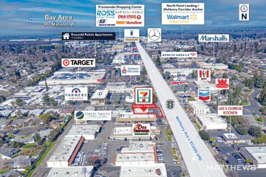 - High Traffic Volume & Visibility: McHenry Avenue is one of Modesto’s busiest thoroughfares with approximately 37,000+ average daily traffic counts, de
