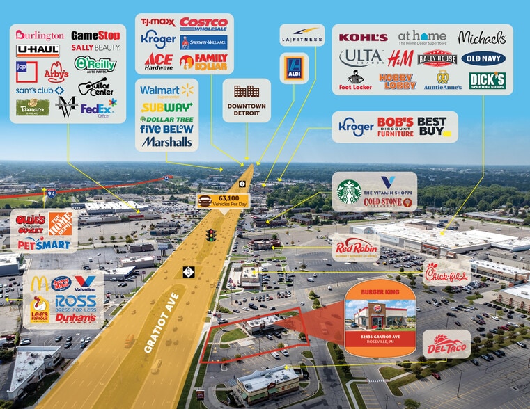 The Snyder Carlton Team is pleased to present the opportunity to purchase an absolute-net-leased Burger King with 10 years of lease term remaining and a nearly 20-year history of successful operation at this location. The operator, GPS Hospitality, is a powerhouse in the restaurant industry. GPS Hospitality has over 475 locations and consistently produces strong above-average sales at this location. This property is situated along a major retail corridor, with an exceptional 63,100 vehicles passing by daily on Gratiot Avenue.
