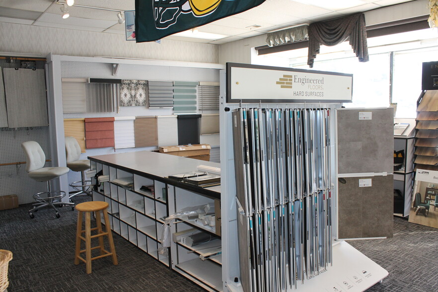 Don't miss the opportunity to purchase this 3736 sf commercial building in the heart of downtown Sycamore. This is the perfect location for your business, so close to everything the downtown has to offer. Plenty of traffic on Elm street means great exposure for your business and there is a municipal parking lot right across the street. Commercial C2 zoning allows for a variety of uses. The floorplan features a centralized customer service counter, a break room and a dedicated office. The service counter and display fixtures can stay. There is also a garage with an overhead door that leads to double doors and provides easy interior access for deliveries. A new roof and gutters were installed in late 2024 so this one is ready to go. This has been the longtime home of BJ's Flooring and after 55 years BJ is finally retiring! The business is available for purchase separately.