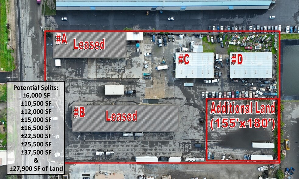 (4) Move-in ready clear-span freestanding buildings totaling ±38,625 SF with multiple configurations available on ±4.96 acres of land 1 mile from CA-99. Multiple split opportunities from ±6,000 SF - 38,625 SF & the ability to lease ±0.64 AC (155' x 180') of fully fenced land. Each building features a functional layout offering large open showroom, rear warehouse, private offices, large breakrooms, common truck dock platforms & roll up doors. Property is gated & offers ample parking as well as street parking. This site also features (2) large indoor cranes, full insulation, interior lighting, electrical throughout and fenced paved yard area. Equipped with heavy power (400 Amps 240 Volt 3-Phase, sky lights, insulated ceiling, ADA restrooms, and economical Malaga Utility Services.