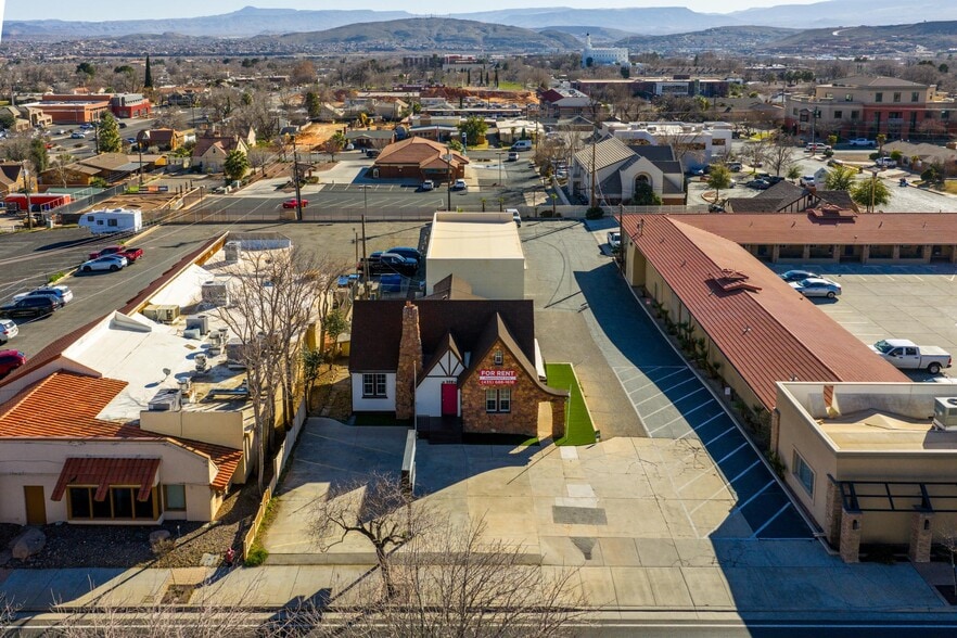 This free-standing building combines the charm of a historic landmark with a unique and attractive presence — a rare opportunity on one of Utah’s busiest boulevards. Perfect for professional offices, clinics, retail, or service businesses seeking visibility, accessibility, and a distinctive address. For over 25 years, this property has proven to be a successful home for a diverse range of businesses — from attorneys and medical clinics to mortgage firms, printing companies, consignment furniture, massage therapy, and many others. Its versatility and visibility make it ideal for nearly any professional or retail use. Tenant agents welcome; 3% commission offered. With C-4 zoning allowing a broad range of business uses, lease terms and pricing are negotiable at fair market value based on the tenant’s intended use and live/work requirements. High Lights: 1. Prime Visibility: Located on one of Utah's busiest commercial corridors with high-traffic exposure. 2. The Tall Pole Sign: This two-level sign is highly visible from a distance, with striking nighttime illumination that captures attention 24/7. Located on one of Utah’s busiest sections of St. George Blvd, the property sees tens of thousands of vehicles daily according to UDOT traffic data — offering unparalleled exposure and free advertising for your business. 3. Ample private parking around the building: Rare on this boulevard, this property provides plentiful spaces, ensuring easy access for both staff and clients. 4. C-4 Zoning: Located in the city’s Central Business District Commercial (C-4) zone, this property is surrounded by restaurants, retail, law offices, hotels, and more — creating a vibrant environment that boosts visibility and attracts customers to your business. 5. Each room features tall windows on two walls, with all 25 windows upgraded to high-performance Low-E, Argon-filled units — filling the space with abundant natural light while maximizing energy efficiency and reducing utility costs. 6. Historic Architecture – Unique Character: Built in 1935 and designed by a renowned Mormon pioneer architect, this building combines historic charm with modern amenities, giving your business a distinctive, memorable presence that attracts attention. 7. Fresh Green Appearance with Artificial Turf – High Curb Appeal, Zero Effort: Artificial turf at the front and sides keeps the property looking lush year-round with minimal upkeep, creating a strong first impression. Please respect the current tenant’s business. Property visits are available by appointment only.