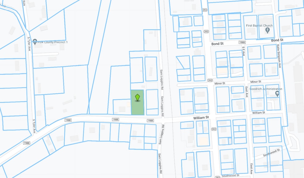 .87 acres in Goodrich Texas with approximately 170' of road frontage on FM 1988 West. There is also approximately 130' of frontage on a side road to assist in driveway needs.
