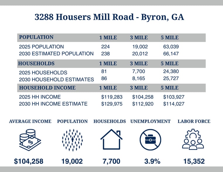 Located in a high visibility area with access to a variety of national retailers and restaurants in Warner Robins including Kroger, Publix, Walmart, The Home Depot, Lowe Toyota of Warner Robins, TJ Max, Lowe’s, Zaxby’s, Starbucks, Dutch Bros Coffee, Olive Garden, Del Taco and more.