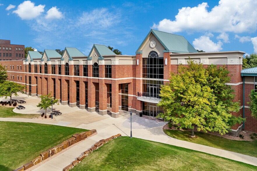 3300 Grand Avenue is a modern, Class-A medical and office facility located within the DMU32 Health and Business Complex in Des Moines. Built in 2005, the ±152,854-square-foot building offers a highly functional layout across three floors, with flexible configurations to accommodate a wide range of users. The property features a two-story atrium, multiple meeting spaces, and a 10,712-square-foot auditorium with seating for 383. Additional amenities include a full-service cafeteria with grease interceptor, a coffee bar, lounge, library, and bookstore. The building is served by four passenger elevators, is fully sprinklered, and connects to a 312-stall parking ramp. Positioned along Grand Avenue with visibility to over 13,000 vehicles per day, the property offers strong exposure and accessibility.