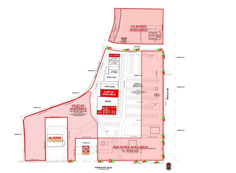 Retail renovation completed 2024. Pad sites available along all frontage. Excellent location at the corner of Town East Blvd and Motley. Easy access to major highways such as I-635, I-30, and US-80.