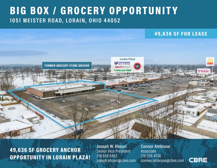 Lorain Plaza is a highly visible strip center bordered by two main access roads, Oberlin Avenue and Meister Road. Lorain Plaza features retail stores, a supermarket, and restaurant. At the intersection of Oberlin Avenue and Meister Road, just two miles to Lake Erie via the main north.south artery, Oberlin Avenue. Adjacent to the Lorain Catholic High School. Only minutes from downtown Lorain.