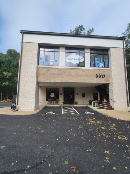 Nice setting, good visibility, private wooded views out the back side of the building, 6 offices, large conference room.