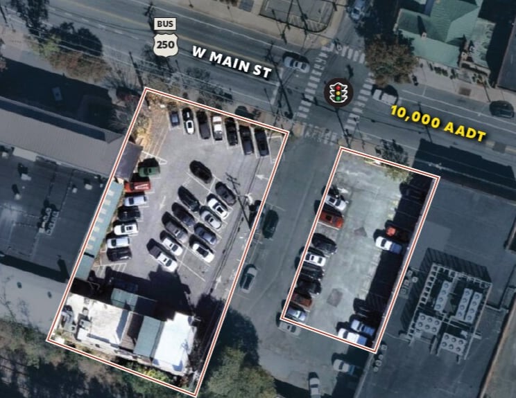 322–408 W Main Street is a 0.54-acre prime development site in Downtown Charlottesville offering exceptional frontage on a high-traffic corridor, maximizing visibility and exposure. Located at a signalized intersection along the main route connecting UVA’s 30,000+ students and faculty to the downtown business district, it represents one of the last major development opportunities in the area. The property allows for up to 7 stories (5 by right) with no density restrictions, supporting a potential 105-unit residential project with additional parking, plus incentives for including affordable housing.