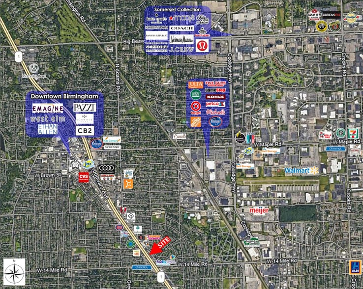 Excellent retail opportunity located on the highly coveted Woodward Avenue retail corridor in Birmingham, Michigan. Situated at the northeast quadrant of 14 Mile and Woodward Avenue, Piety Hill has over 80,000 VPD passing the property and offers 97 parking spaces. The shopping center has great visibility and ease of access with two points if ingress/egress along Woodward. Additionally, Piety Hill recently underwent architectural enhancements, created a new façade and improved parking areas.