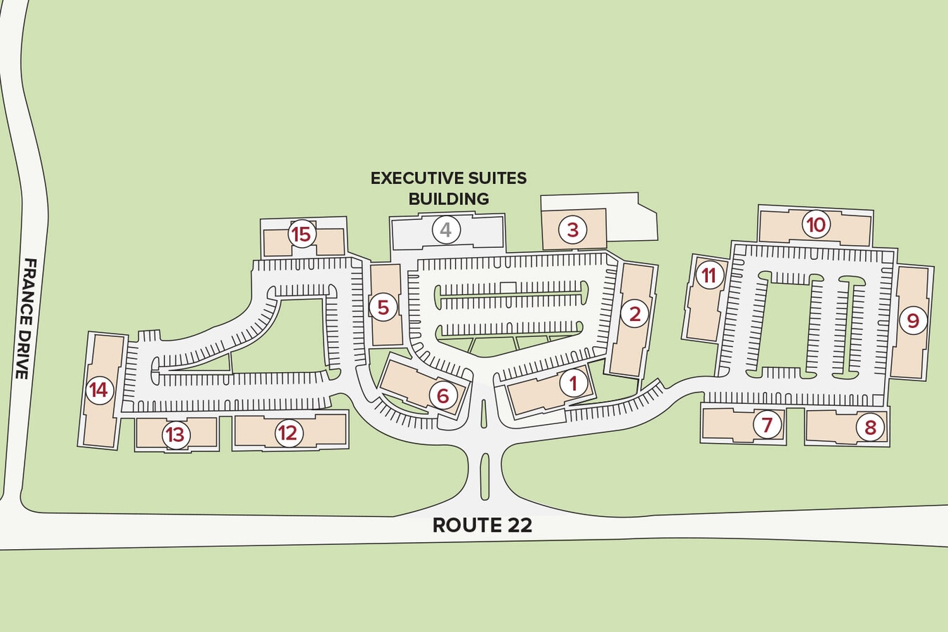 Branchburg Commons is a sprawling 15-building medical and professional office complex located on heavily traveled Route 22 West in Branchburg Township. Nestled within 19 acres of professionally landscaped and managed grounds, Branchburg Commons medical and professional office complex provides 1116,526 square feet of space. Situated in Somerset County, the complex is also readily accessible from Routes 28, 31, 202, and 206, and Interstates 78 and 287, making Branchburg Commons an ideal place for your growing business. Furnished executive suites are available, and short-term leases will be considered.