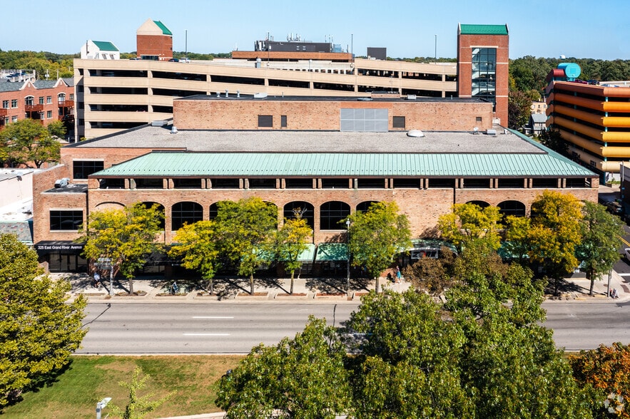 Highly visible building located along Grand River Avenue, directly across from Michigan State University's Campus in the core of downtown East Lansing's Business & Shopping District with access to an attached parking structure and many downtown amenities.