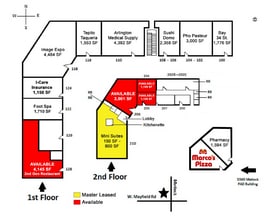 Matlock Mayfield Village is high visibility retail/office and medical center with over 40,000 sf. It's a two-story center with an outbuilding located on a main artery Matlock/Mayfield going to and from work, high pedestrian traffic, focused heavily from hospital activity: patients, pharmacy, doctors, nurses, etc. Current tenants include Marcos Pizza, I-Care Insurance, Sushi Domo, Pho Pasteur, Bay 34th Street Diner, Arlington Medical Supply, Natural Vibrant Health/CBD Wellness, PL Pharmacy and Taqueria Tepito. For a complete list of all available properties, please visit www.ridgepcre.com
