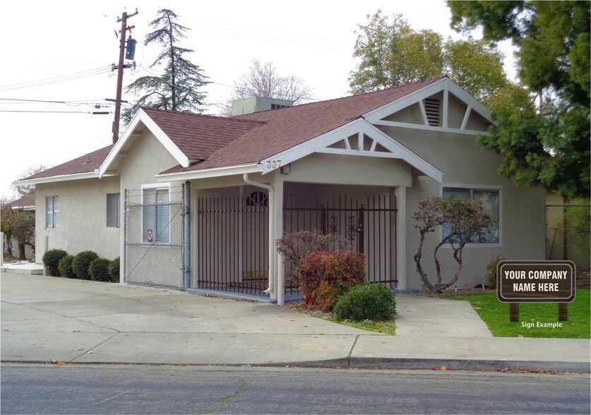 Well maintained commercial property located at 337 Burney Street in Modesto, offering approximately 1,270 square feet of total building area on a 5,662 square foot parcel. The property includes a 990± SF main building featuring three private offices/rooms, an open reception and work area, kitchen and break room, and one restroom, along with a separate 280± SF rear building suitable for office, storage, or creative workspace with its own restroom. Interior finishes include hardwood flooring throughout and good natural light from windows and interior glass. The property also features gated concrete parking with approximately six stalls and street visibility. Zoned TND (Traditional Neighborhood Downtown), allowing for a variety of professional, office, or service-related uses.